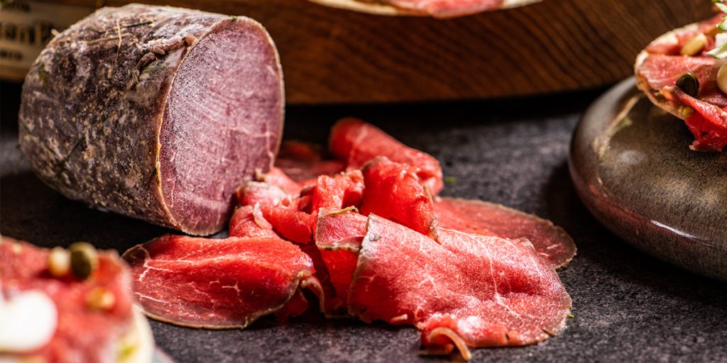 - Das abgekühlte Rindsfilet straff in Frischhaltefolie einwickeln und für eine Nacht in den Gefrierschrank legen.